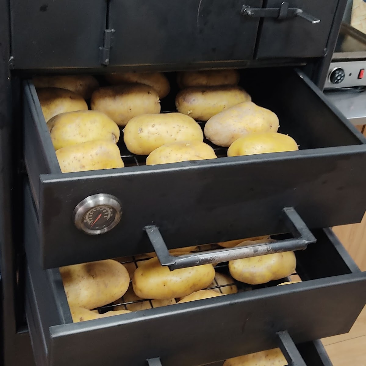 Un local especializado en papas asadas take away/delivery con una propuesta original, ya que está ambientado en semana santa con los nombres de sus papas con tronos de semana santa. Las patatas tienen un tamaño considerable en comparación a otros sitios, y las que he probado estaban buenas y muy cremosas, quedando en su interior tipo puré. La atención por parte del personal, muy agradable.